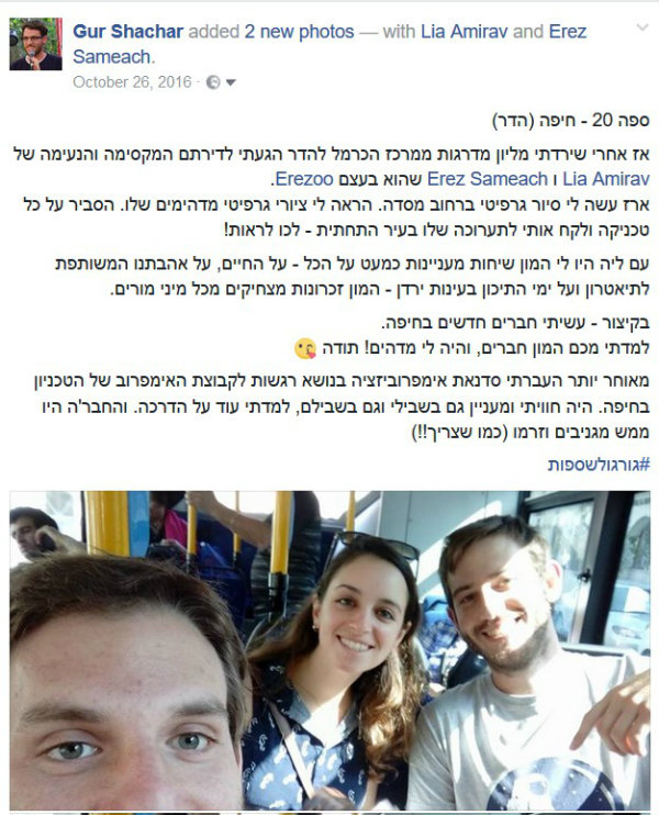 הרבה חברים טובים שתפו את הפוסט ועשו לייק. אני אישית הפצתי אותו בכל מיני קבוצות רלוונטיות ומהר מאוד קיבלתי פניות רבות מאנשים שאינני מכיר והזמינו אותי. עניתי להם שנהיה בקשר בהמשך. ככה זה כשלא מתכננים.